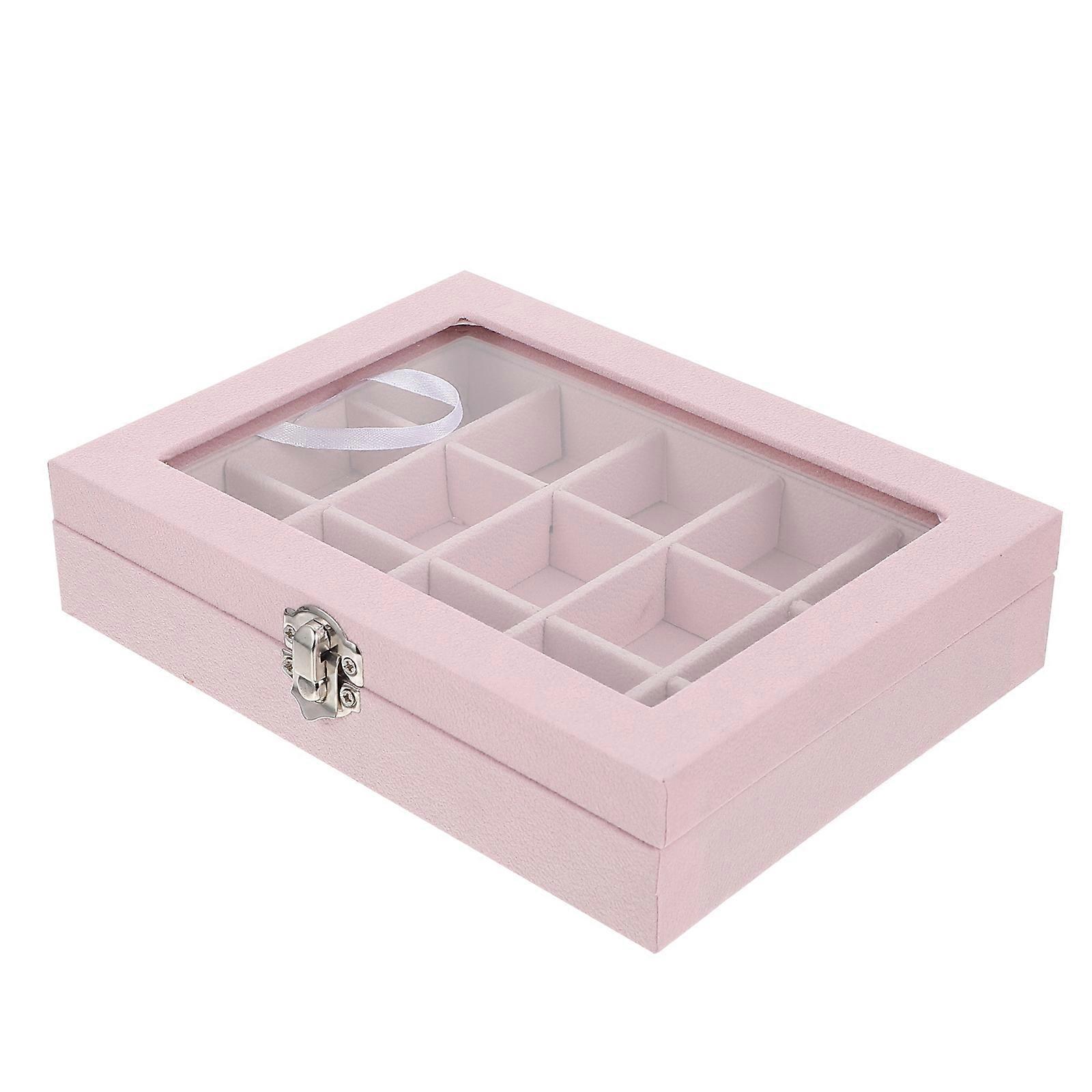 Multi-Compartment Jewelry Storage Case Practical Earring Ring Display Box For Home Decor Size 20x15cm Pink Color 1Pack