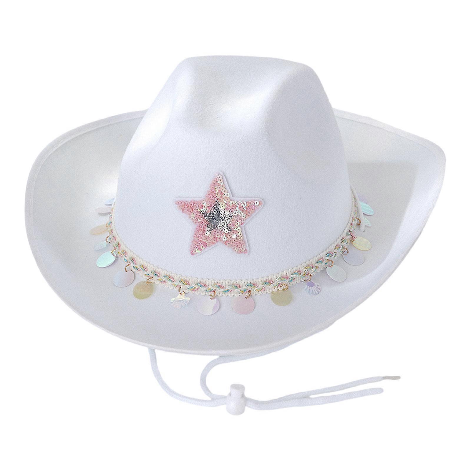 Glittering Star Sequins Hat Western Hat Bachelors Party Hat Halloween Women Hat for Dress Up Cosplays Party Costume White