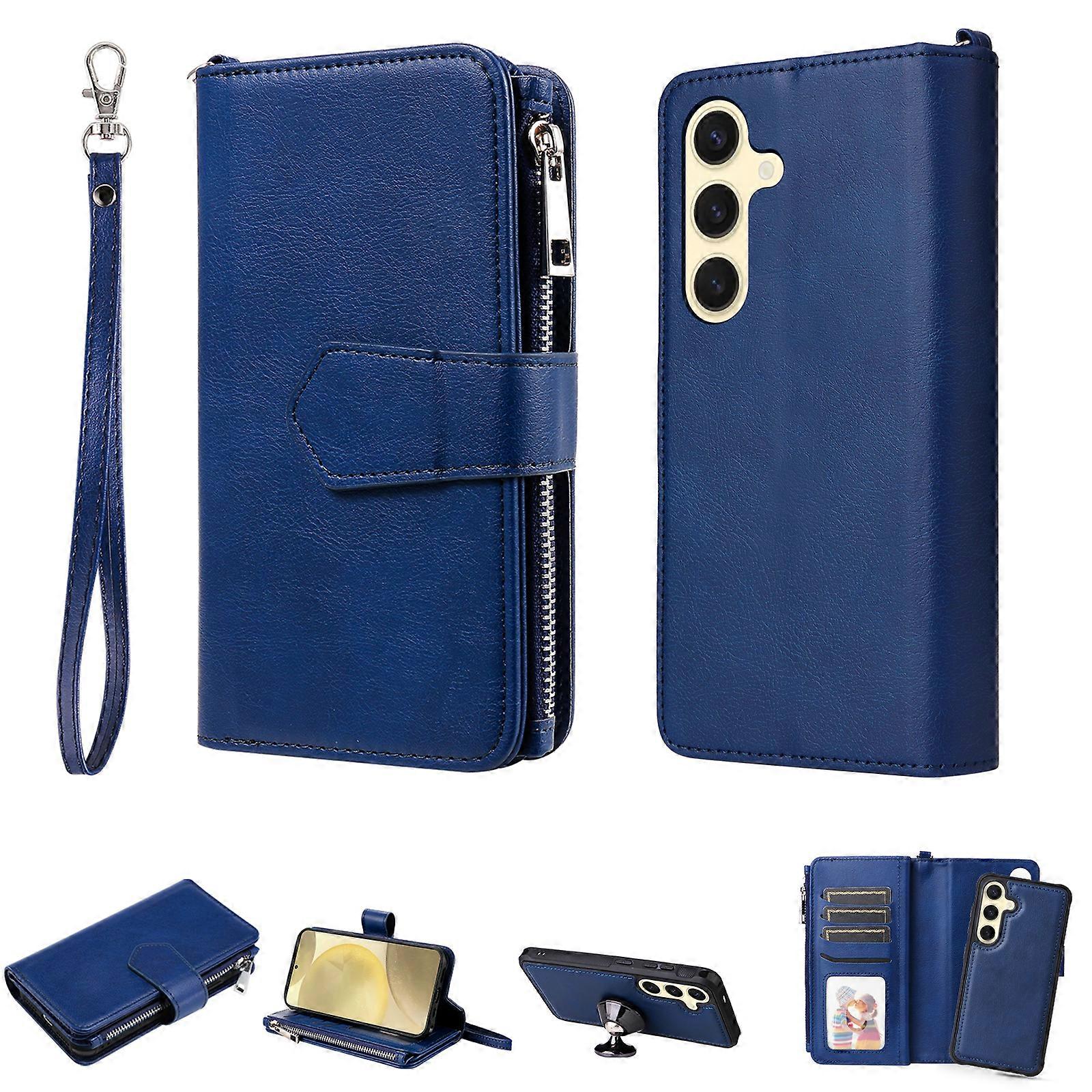 Compatible For Samsung Galaxy S25 2 in 1 Magnetic Detachable Leather Case with Zipper Wallet Stand