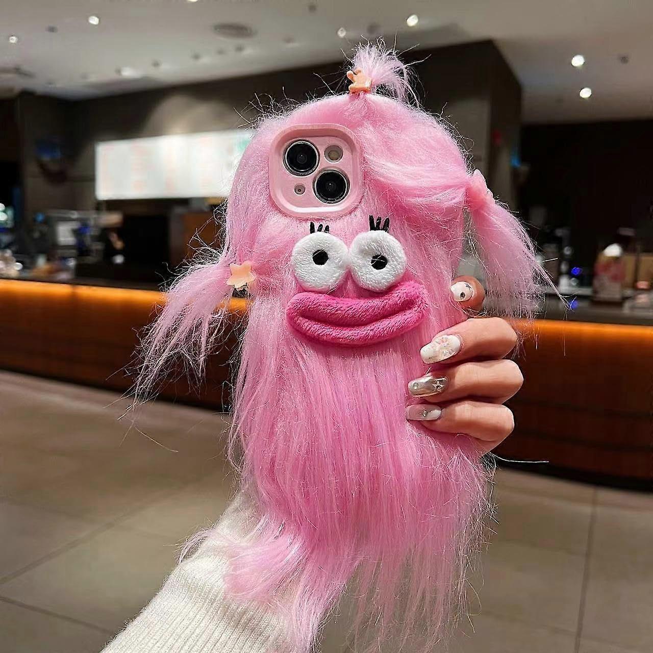 Compatible with iPhone cases. This quirky pink furry case is fun and silly. Use