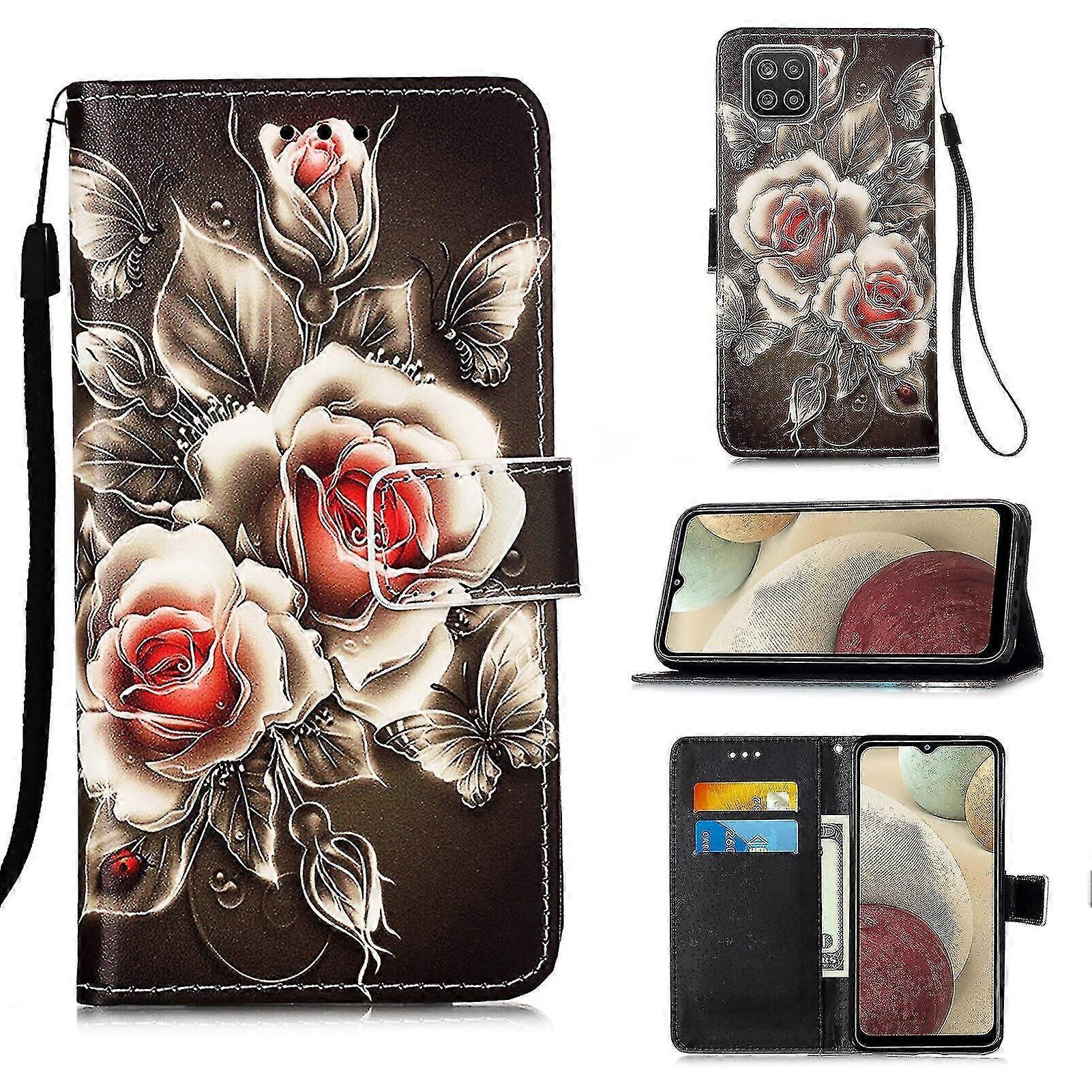 Compatible With Samsung Galaxy A12 Case Leather Flip Wallet Cover With Card Slot Holder Kickstand Pattern - Rose