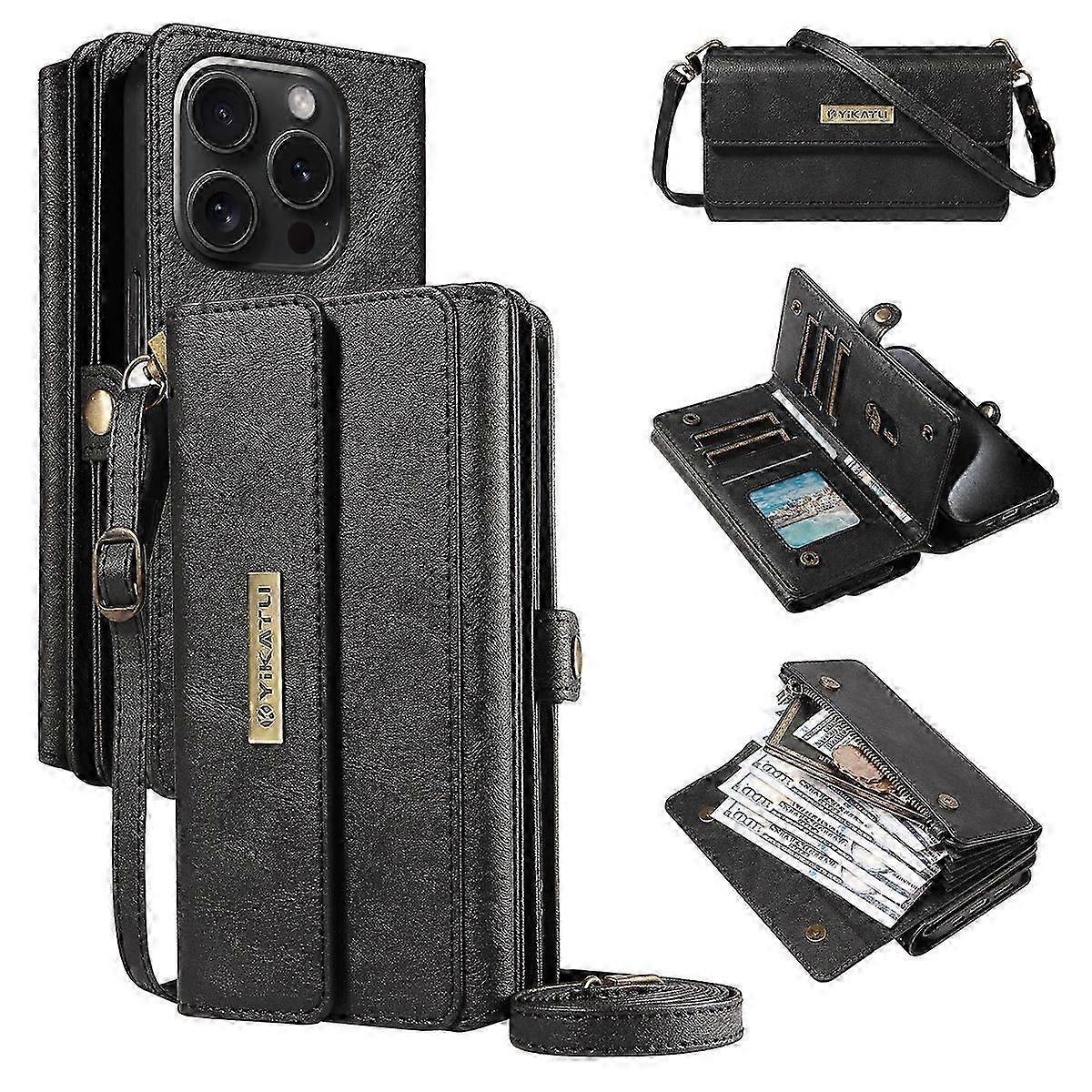 Compatible For iPhone 15 Pro Case YIKATU YK-008 Zipper Wallet Leather Phone Cover with Shoulder Strap