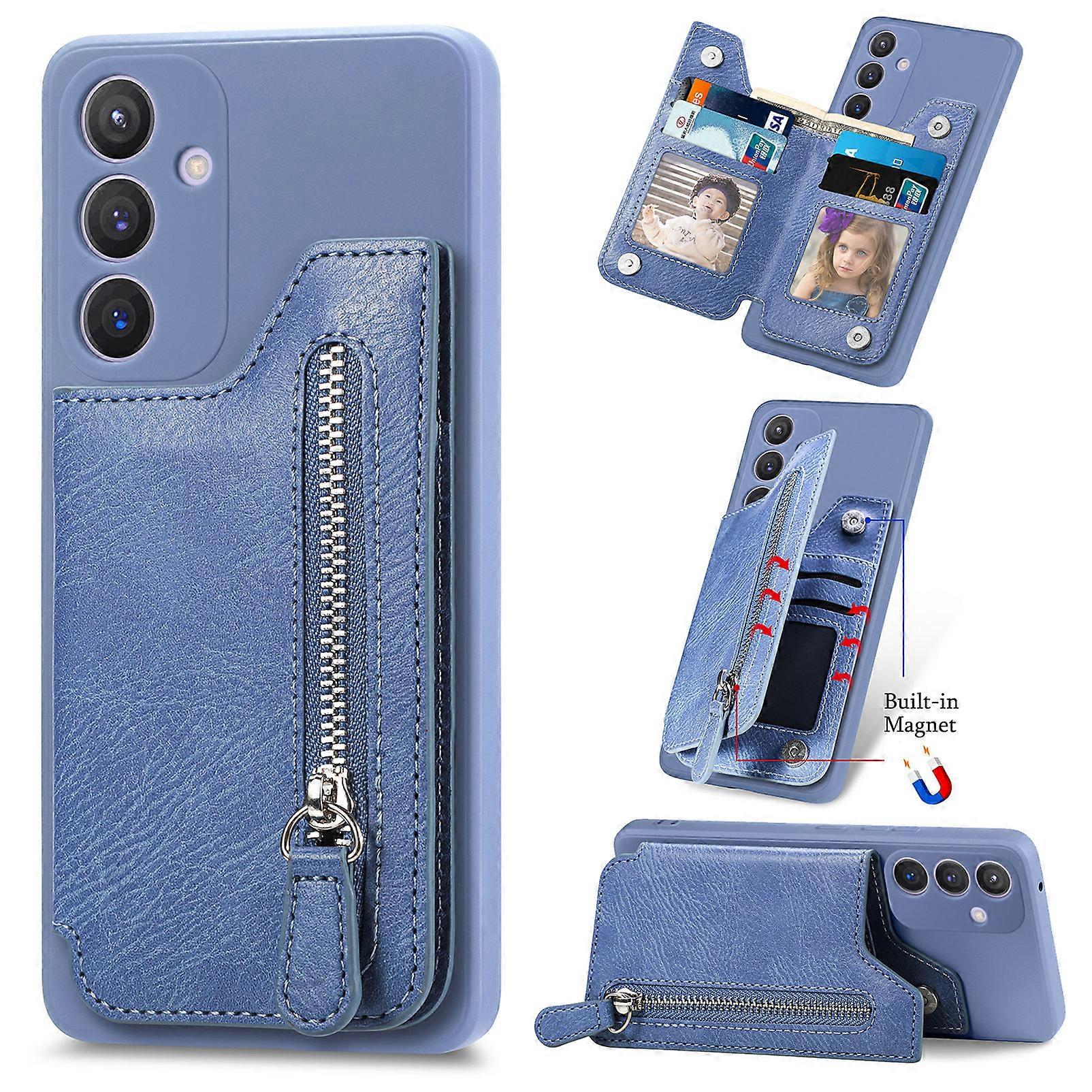 Compatible For Samsung Galaxy S25+ Case PU Leather+TPU Phone Cover with Zipper Pocket Wallet