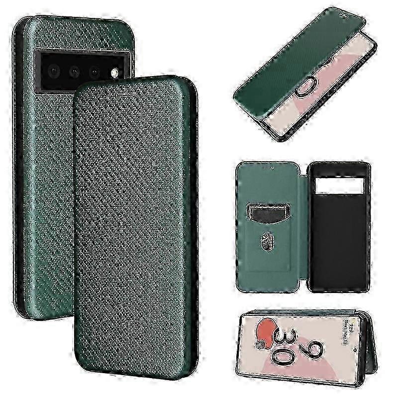 Compatible with Google Pixel 6 Carbon Fiber Pattern Premium Flip Case with Card Holder Magnetic Closure