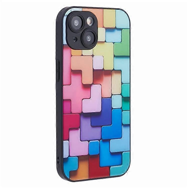 Compatible For iPhone 13 Tempered Glass Phone Case Flat 3D Square Pattern