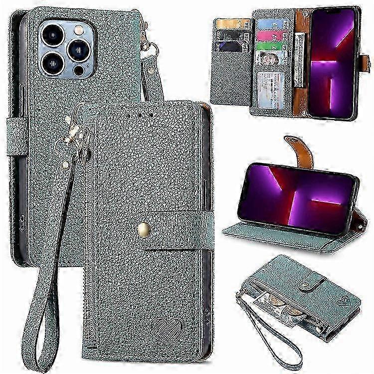 Compatible For iPhone 13 Pro Case RFID Zipper Leather Phone Cover with Wallet Card Slots