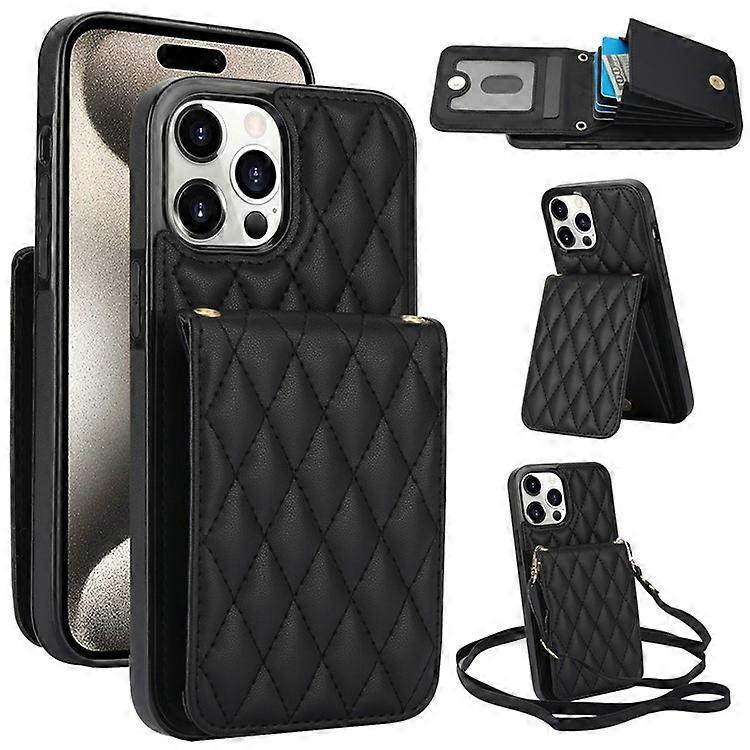 Compatible For iPhone 15 Pro Max Case Rhombus Leather + TPU Card Slots Phone Cover with Crossbody Strap
