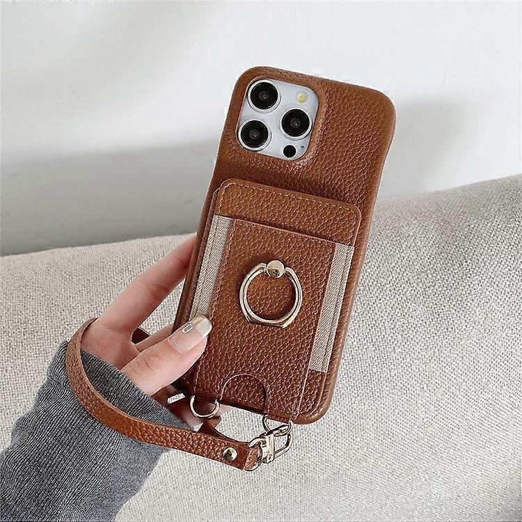 Compatible For iPhone 16 Pro Max Case Card Slots Kickstand PU Leather Back Cover with Ring Holder, Wrist Strap