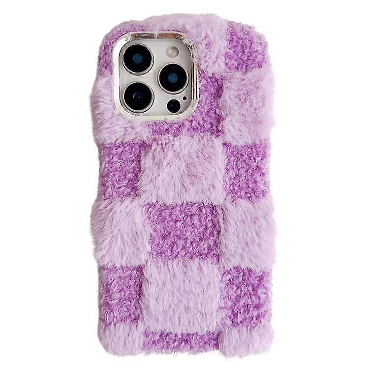 Compatible For iPhone 16 Pro Max Case Plush Fluffy Splicing Checkered Pattern TPU Phone Cover