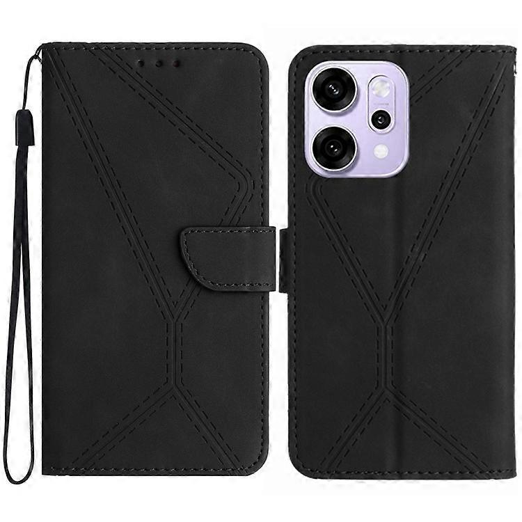 Compatible For Oppo Reno14 Pro 5G Case Skin Touch Lines Imprinted PU Leather Flip Phone Cover