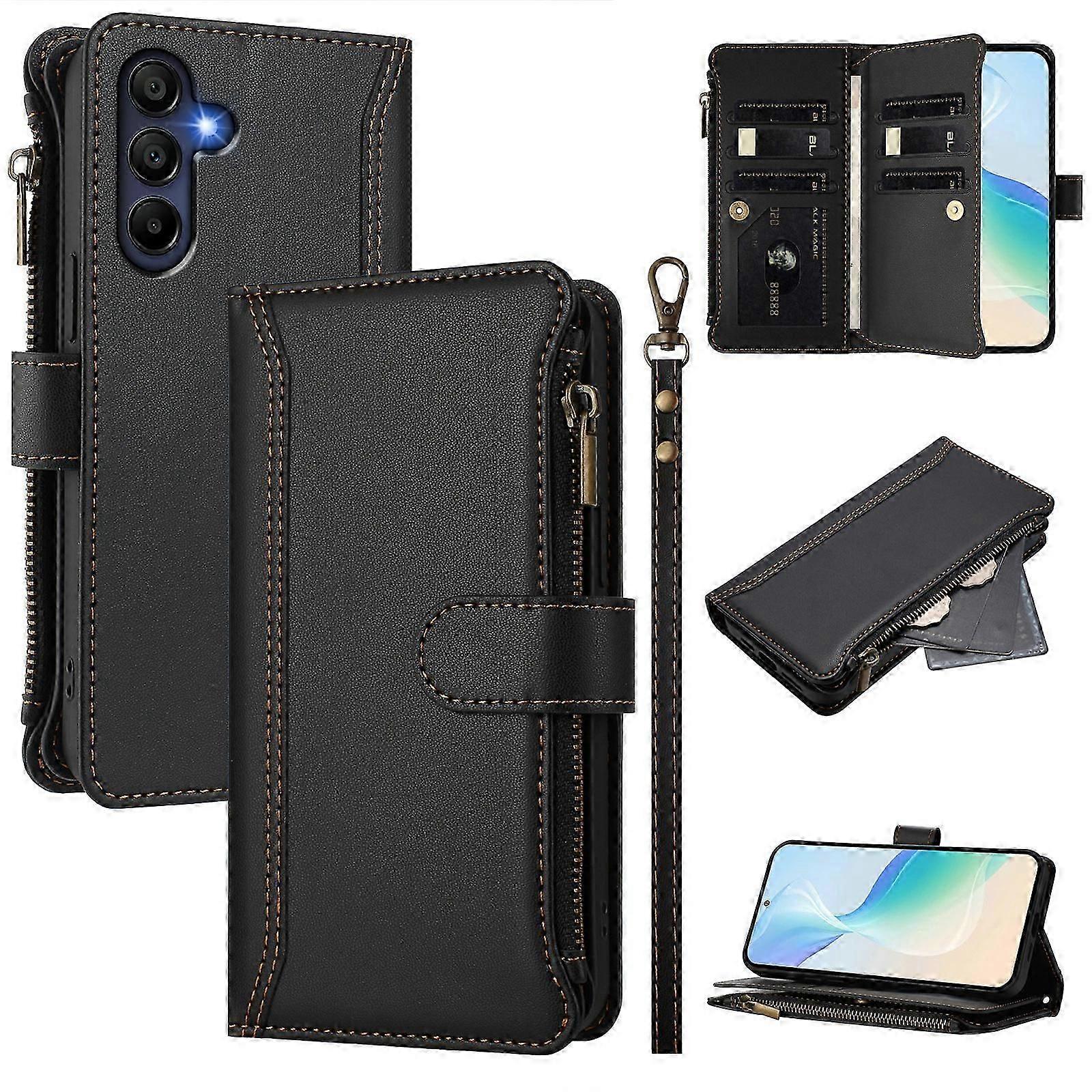 Compatible For Samsung Galaxy A26 5G Leather Case 9 Card Slots Zipper Wallet Stand Phone Cover with Wrist Strap
