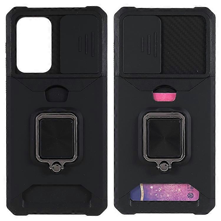 Compatible For Samsung Galaxy A33 5G Camera Slider PC + TPU Phone Case Shockproof Card Slot + Kickstand Design Mobile Phone Cover