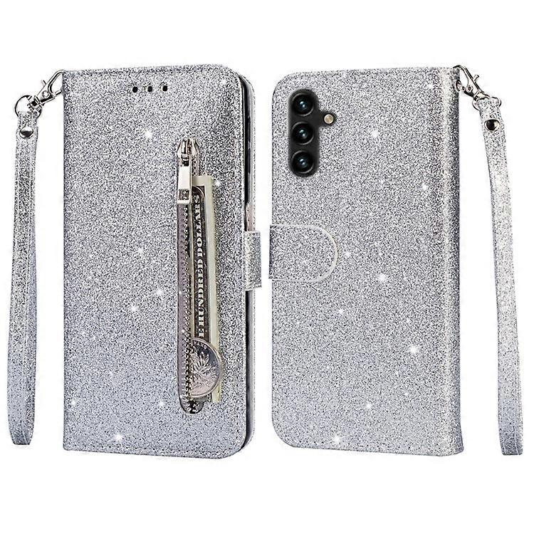 Compatible For Samsung Galaxy A55 5G Cell Phone Case Zipper Pocket Wallet Glitter Leather Drop-proof Cover
