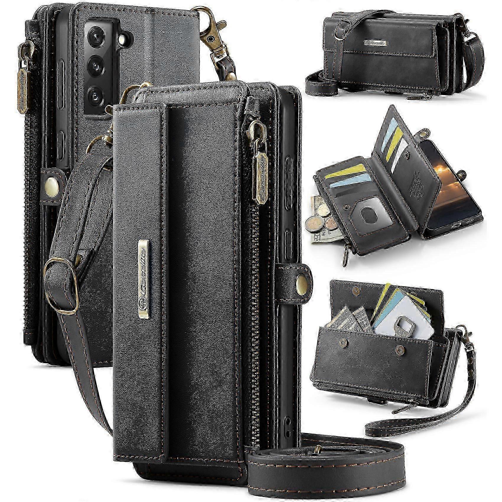 Compatible For Samsung Galaxy S21 FE 5G Case CASEME C39 RFID Zipper Wallet Stand Leather Cover with Strap