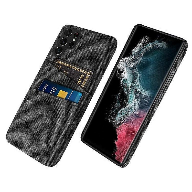 Compatible For Samsung Galaxy S23 Ultra Cloth Texture Dual Card Slots Phone Case Anti-scratch Hard PC Protective Cover