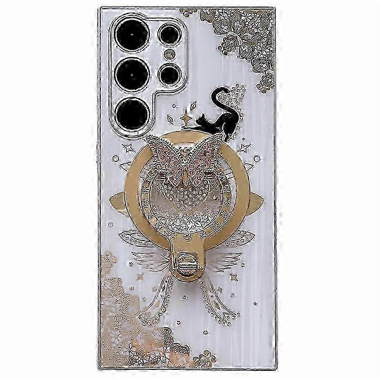 Compatible For Samsung Galaxy S24 Ultra Magnetic Case Rhinestones Decor Kickstand Cat Pattern TPU+PC Phone Cover