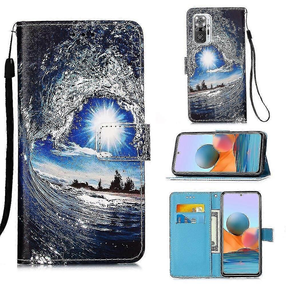 Compatible With Xiaomi Redmi Note 10 Pro/ 10 Pro Max Case Leather Flip Wallet Cover With Card Slot Holder Kickstand Pattern - Waves And Sun