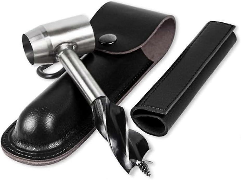 Multifunctional Manual Survival Drill With Leather Case Hand Auger Wrench For Camping Outdoor Auger Drill Bits (Black) (1Pc)