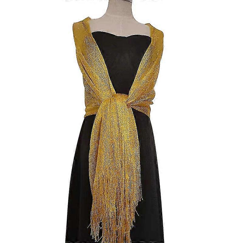 Sexy Gold Silver Thread Thin Long Shiny Sunscreen Shade Shawl Female Hollow Lace Tassel Party Evening Dress Cloak Scarf