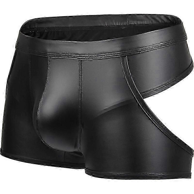 Sexy Men Hollow Boxers Male Underwear Faux Leather Open Butt Bottoms Performance Underpants Backless Boxer Shorts