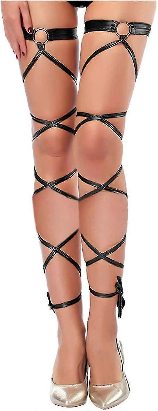 Sexy Leg Wraps Garter Glossy Elastic Halloween Black Leather Christmas Cross Bandage Shiny Raves Party Dancing Music Festivals Costume Accessories For