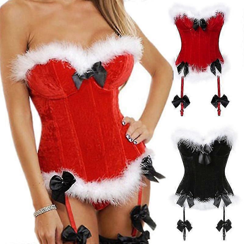Sexy Velvet Christmas Corsets Women Miss Santa Bustier Corselet Bowknots Zipper Side Overbust Corset