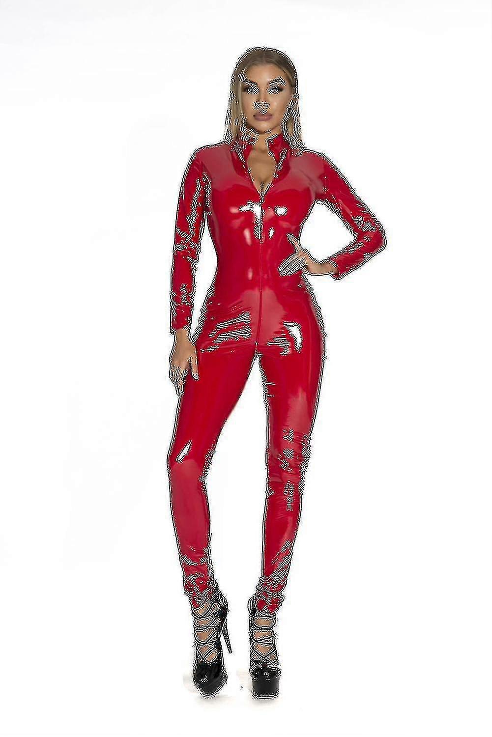 Sexy Plus Size Latex Catsuit For Women S-5xl - Black Full Bodysuit Pvc Jumpsuit Clubwear Costume