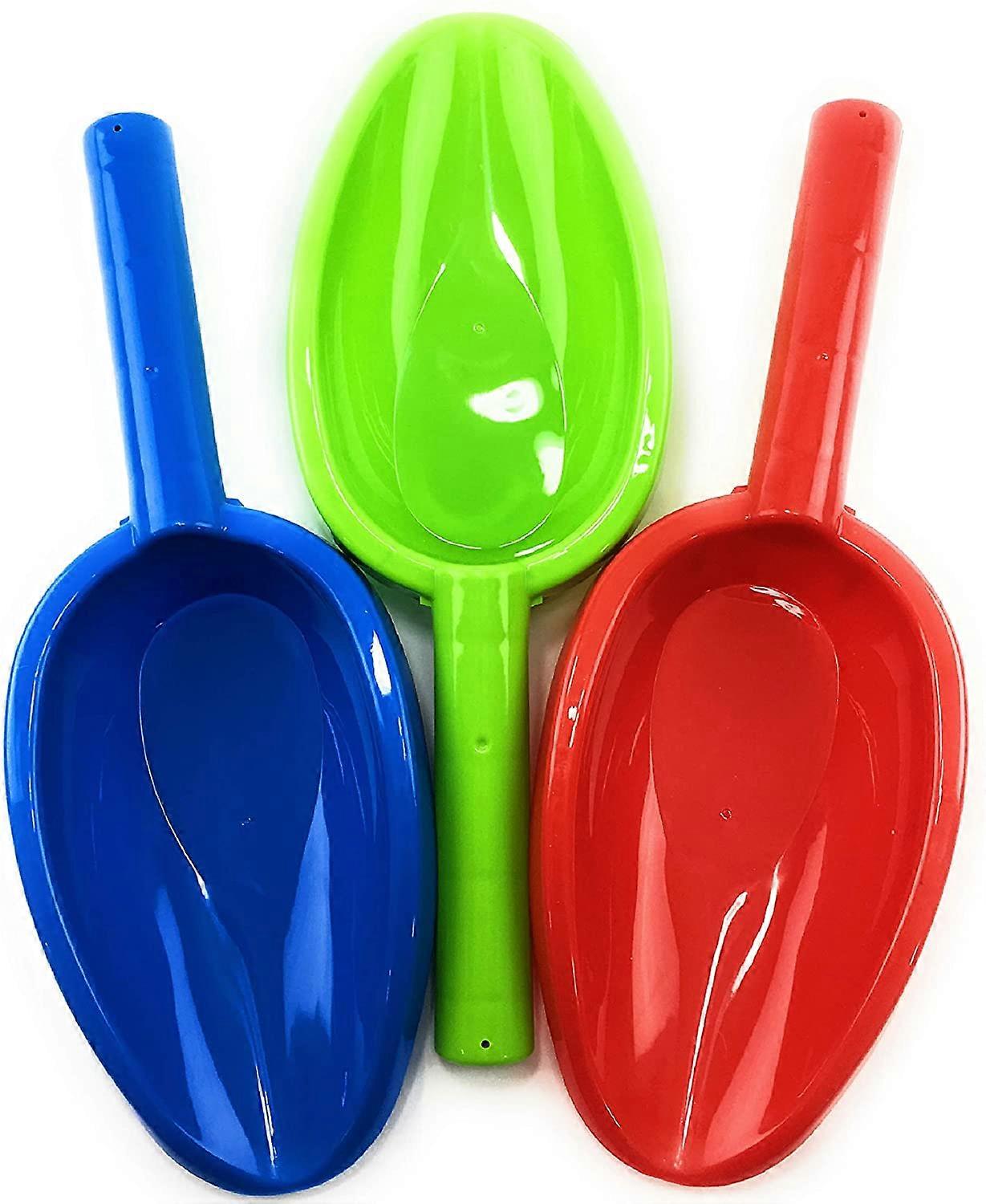 14" Kids Long Handle Sand Scoop Plastic Shovels for Sand & Beach (Red, Blue & Green) - 3 Pack
