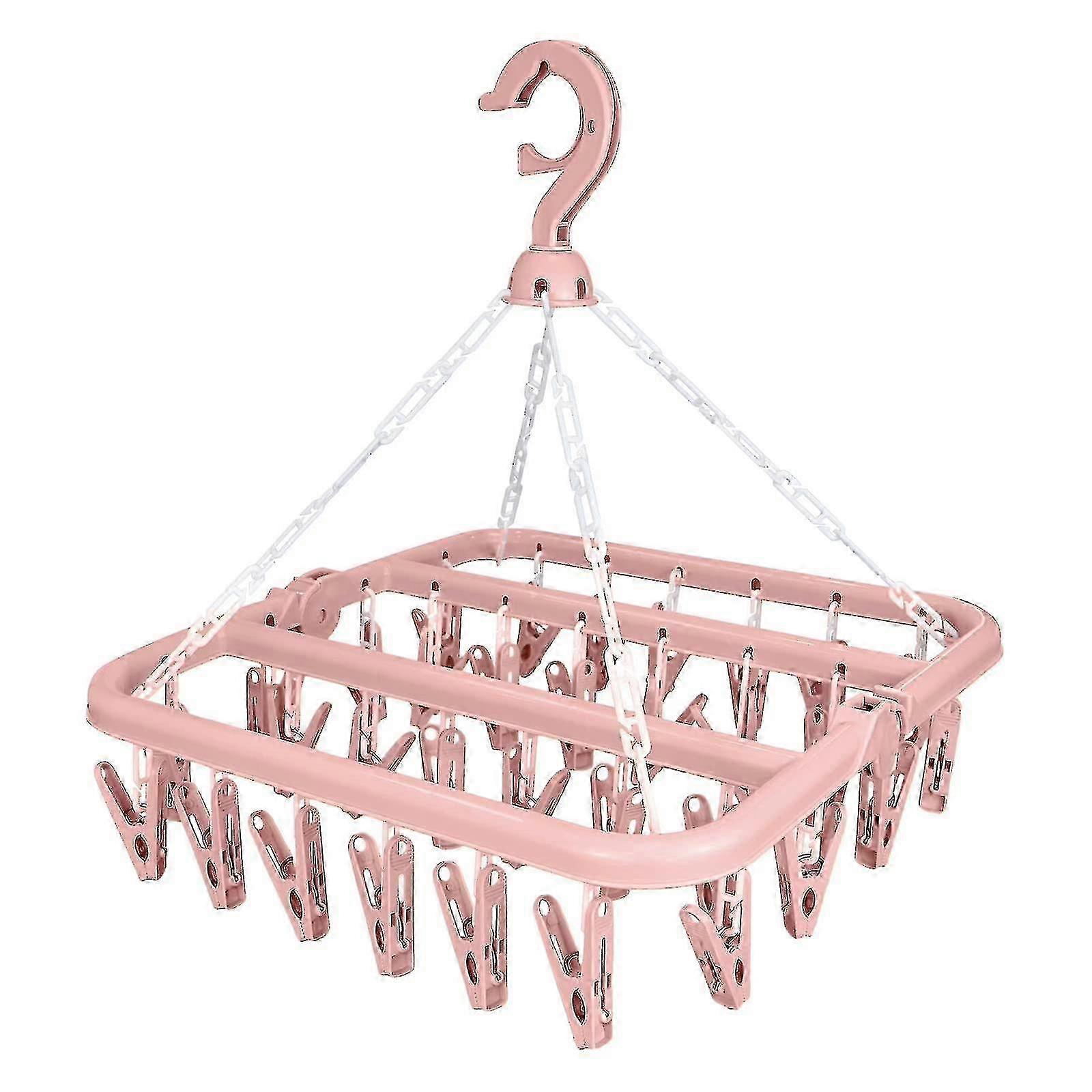 Sock Dryer, Sock Drying Rack With 32 Pegs Laundry Drip Hanger, Foldable Indoor Hanging Dryer With Windproof Hook