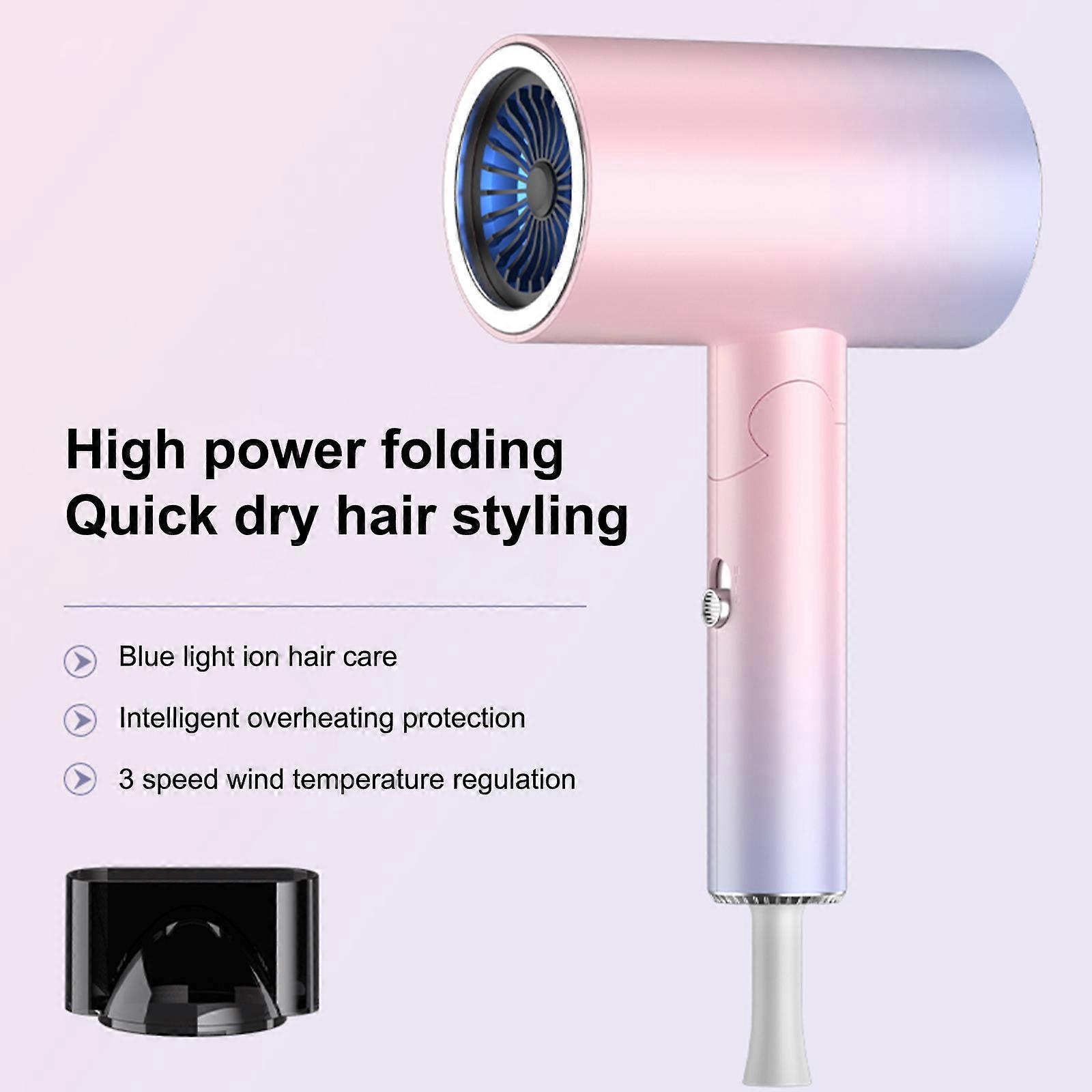 Household foldable hair dryer 1900W high power quick drying intelligent safety constant temperature blue light hair care 3 adjustable speeds (strong w
