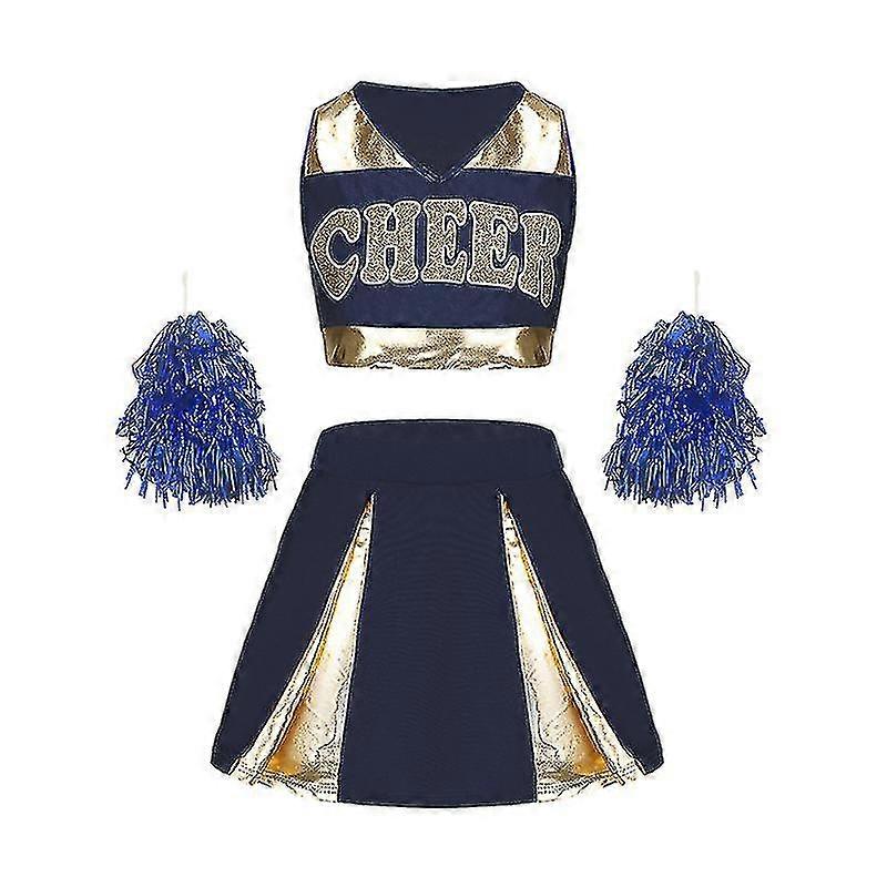 Women's cheerleading costume sets, Double-sided printing of polyester fiber, Fashionable pleated skirt design, Including tops, skirts and pom-poms