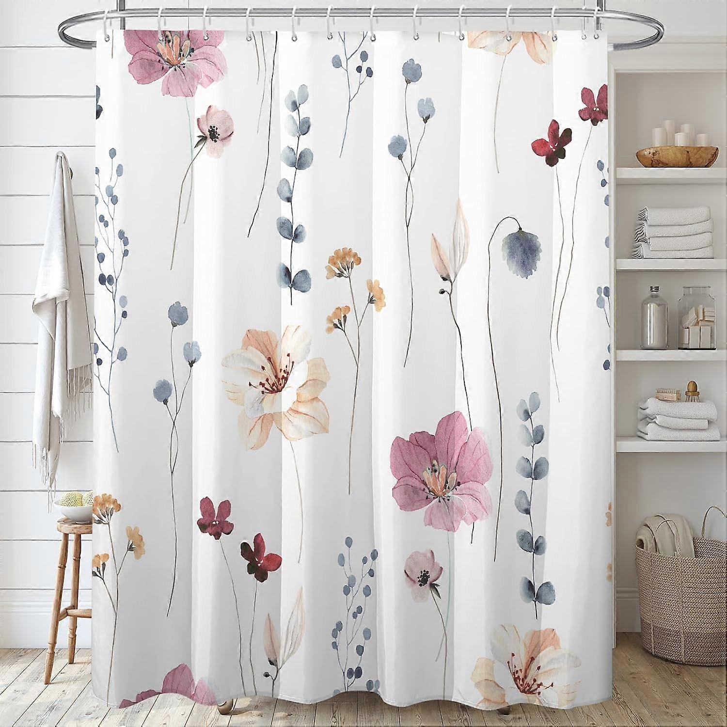Watercolor Floral Shower Curtain Sets,Coral Beige Flowers Bathroom Curtains,Modern Minimalist White Bath Curtain, Waterproof Fabric with 12 Hooks 72x7