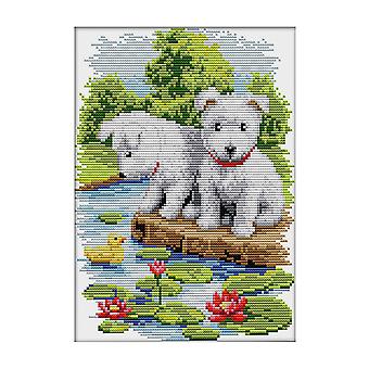 Stamped And Counted Cross Stitch Kits - Cute Dog Puppies 11ct