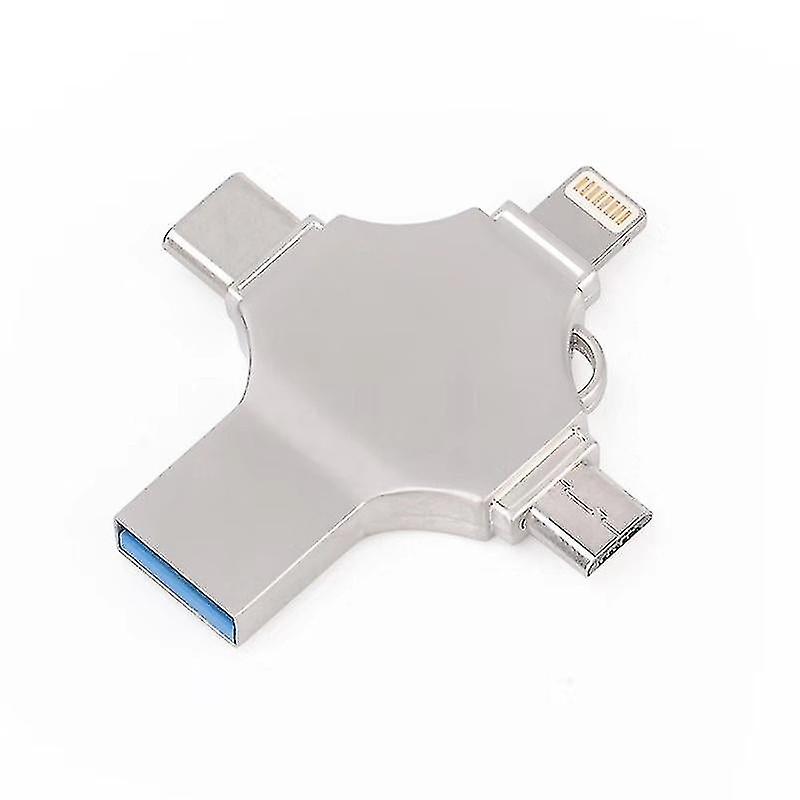 Computer Accessory Sets Cross 4 In 1 16gb 8 Pin + Micro Usb + Usb-c Type-c + Usb 3.0 Metal Flash Disk Silver