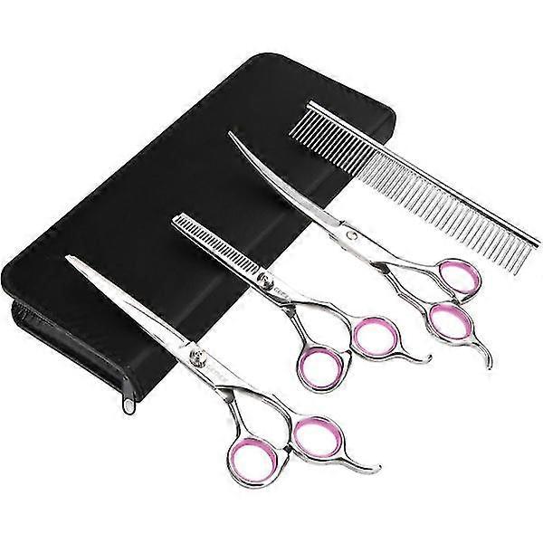 Set, clipper kit for pet grooming, thinning, straight and curved scissors with comb
