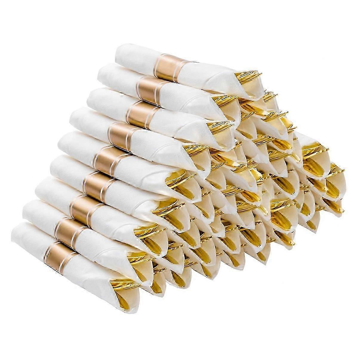 Pre Rolled Silver Plastic Silverware Set,Pre Rolled Napkins with Silver Cutlery Set for Party,Birthd