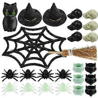Halloween Mini Ornaments Set with Witch Hats, Cauldrons & Skulls for DIY Crafts, Micro Landscapes, Miniature Villages & Garden Decor