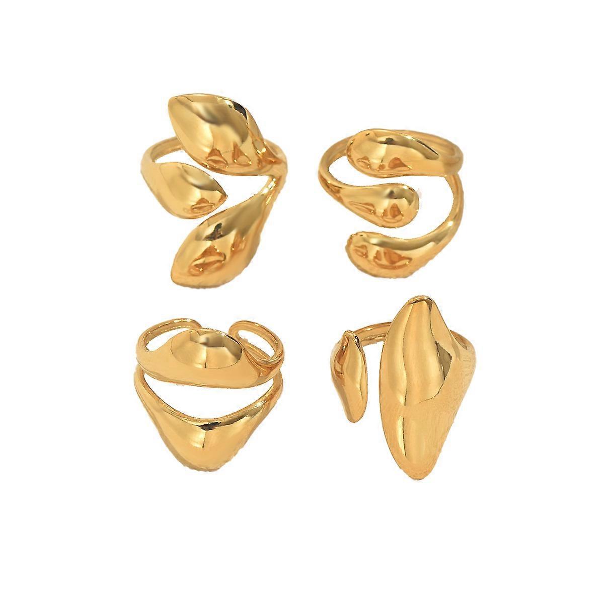 Ring Set, Twisted Geometric Line Design Open Adjustable Versatile Rings