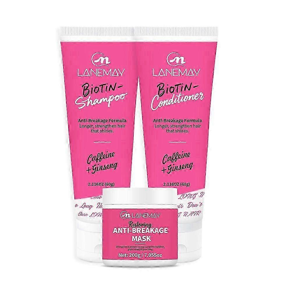 Shampoo and Conditioner Set, Anti Breakage Mask, Grow Long Biotin - Anti-Frizz Deep Conditioner For Split Ends - Vitamin E & Ginseng for Curly, Dry &
