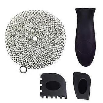 مجموعة الغسيل المصنوعة من الفولاذ المقاوم للصدأ تشمل تنظيف تنظيف كاشطات سوداء غطاء مقبض لمجموعة أدوات تنظيف أحواض الحديد الزهر