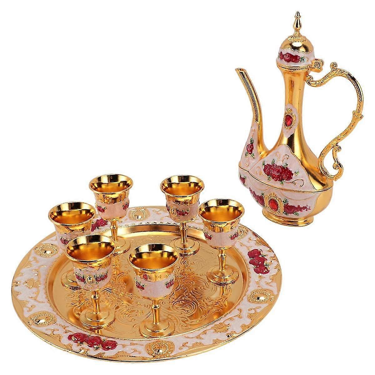 Vintage Turkish Coffee Set Zinc Alloy Tea Pot And Cups Elegant Ambience For Home Coffee Shop Decoration