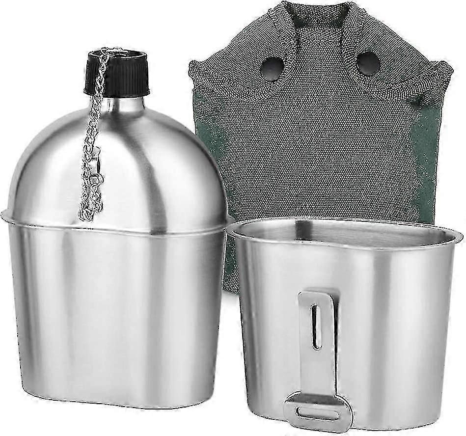 Military Canteen Kit 2pcs 1000ml 600ml Stainless Steel Military Canteen Cup Set With Cover Bag For Outdoor Camping Hiking Backpacking