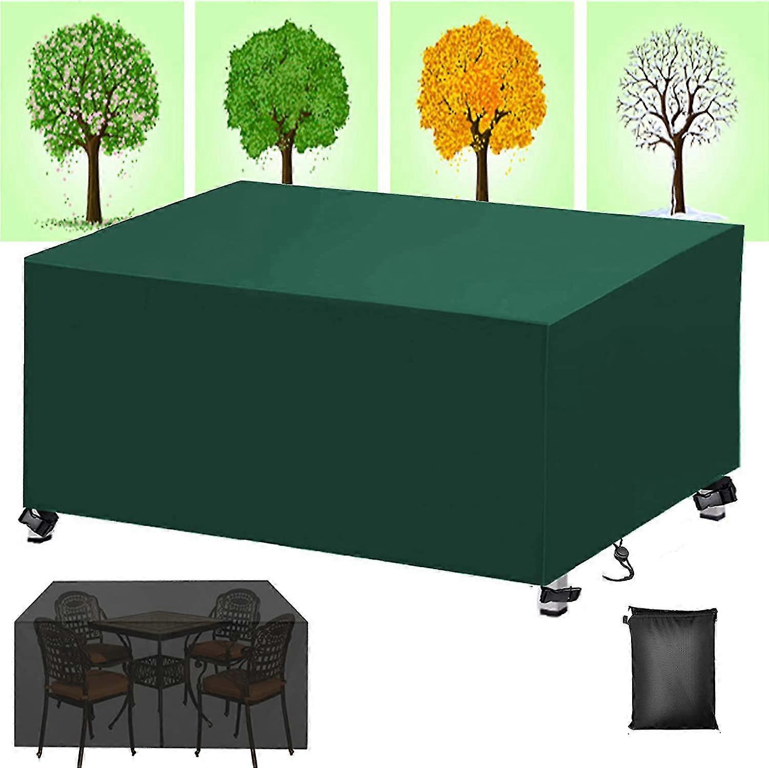 Garden Furniture Cover, Outdoor Furniture Cover 420d Oxford Fabric CoverGarden Furniture Cover, Outdoor Furniture Cover 420d Oxford Fabric CoverPremium Garden Furniture Cover Made from durable, fade-resistant Oxford fabric with a thickened, waterproof, permanent tear-proof coating. UV resistant design provides exceptional durability against sunlight. If you experience inclement weather or other high winds, it is recommended that you place a heavy object on top of the furniture covering.Sturdy design Protective tarp cover has buckle straps that can be adjusted and secure the product at the feet of furniture, so that they do not fly and move easily even in bad weather, so that they can withstand the wind for a long time. Tarpaulin garden table is suitable for all kinds of outdoor garden furniture, such as chairs, benches, coffee tables, furniture, etc.Easy to clean Waterproof, tear-proof, UV-resistant, heat-resistant and washable, the garden furniture cover is extremely easy to clean, hose it down with the smart and dry in the sun, just clean it with a water hose and dry it in the sun or wipe it with a damp cloth.Dimensions of the garden furniture coverThe protective cover is suitable for covering tables, chairs, rectangular patio tables, rattan furniture or oval-shaped garden furniture. Warm Tips: Please check the furniture size before ordering, in order to choose a more suitable size for the furniture cover.GuaranteeWe will provide customers with a 100% satisfaction guarantee. If you have any problems while using the item, please feel free to contact us.