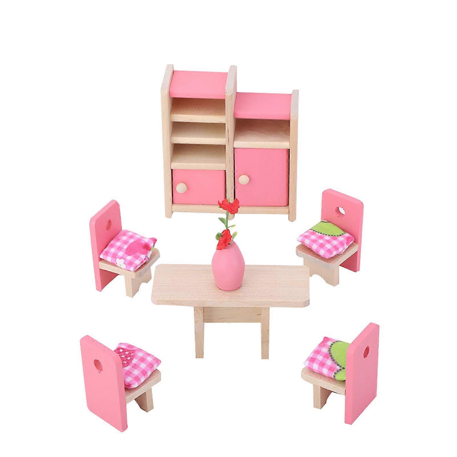 Mini Lifelike Simulation Wooden Furniture Set for 1:12 Doll House Accessory (Dining Room)