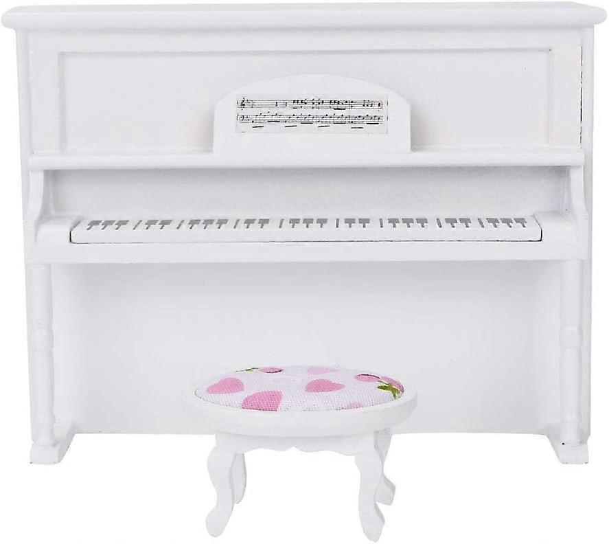 Wooden Dolls House Furniture Set, Dollhouse Piano, 1:12 Mini Simulation Wooden Dollhouse Furniture Grand Piano with Stool Doll House Model, Doll House