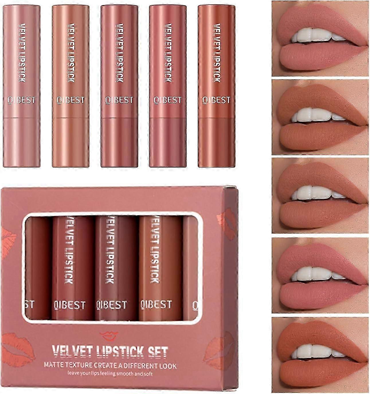 Nude Lipstick Matte Lipstick Set For Women, 5 Colors Matte Velvet Lipstick Set, Lightweight Soft Long Lasting Matt Lipstick Make Up Set
