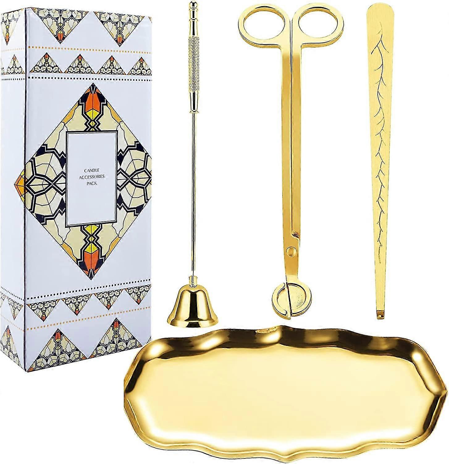 Candle Wick Trimmer Set, 4 In 1 Candle Accessory Set Include Candle Snuffer And Wick Trimmer, Wick Dipper And Candle Plate, Great Candle Snuffer Gold