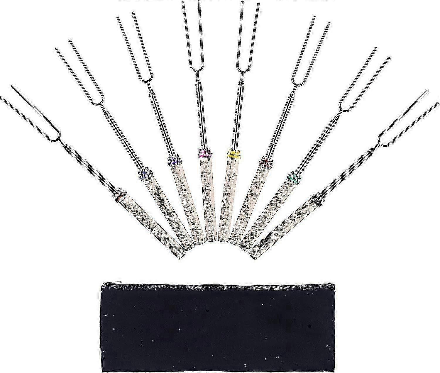 Grill Tools Set Barbecue Fork Telescopic Stainless Steel Marshmallow Roasting Stick Multi-color Hot Dog Safe Bbq Forks With Wooden Handle And Carrying
