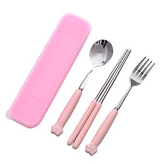 Cat's Paw Tableware Set Ceramic Stainless Steel Tableware Chopsticks Spoon Fork Portable Tableware Set