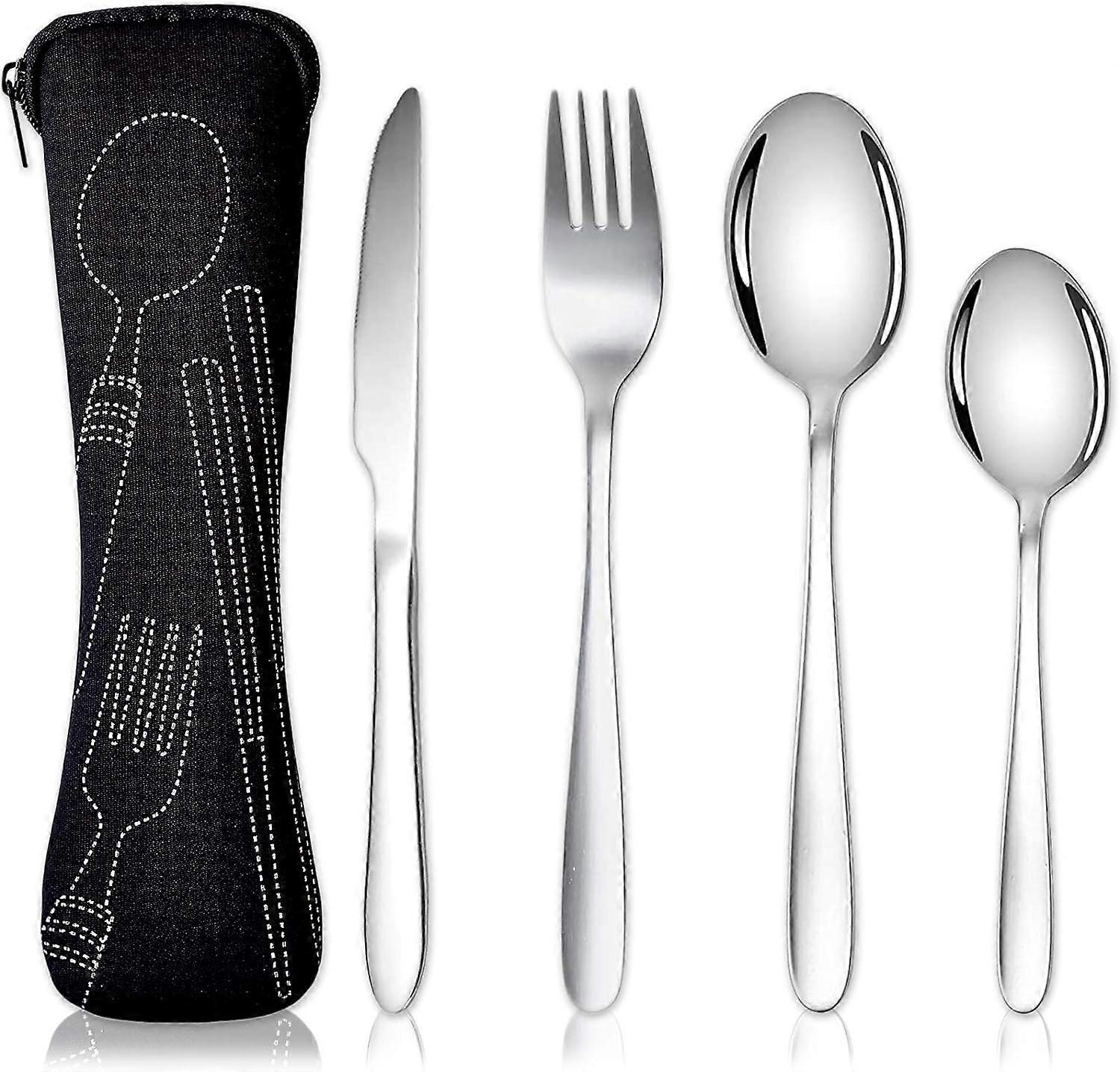 Cutlery Set with Portable Pouch Case, Stainless Steel Flatware Camping Utensil Set with Neoprene Bag for Outdoor Travel Picnic Office School Lunch Box